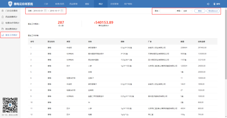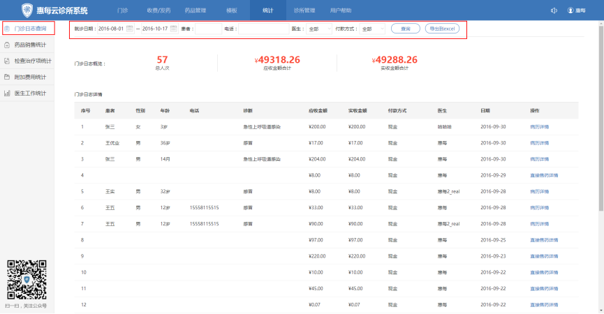 一、诊所如何进行门诊日志统计查询?