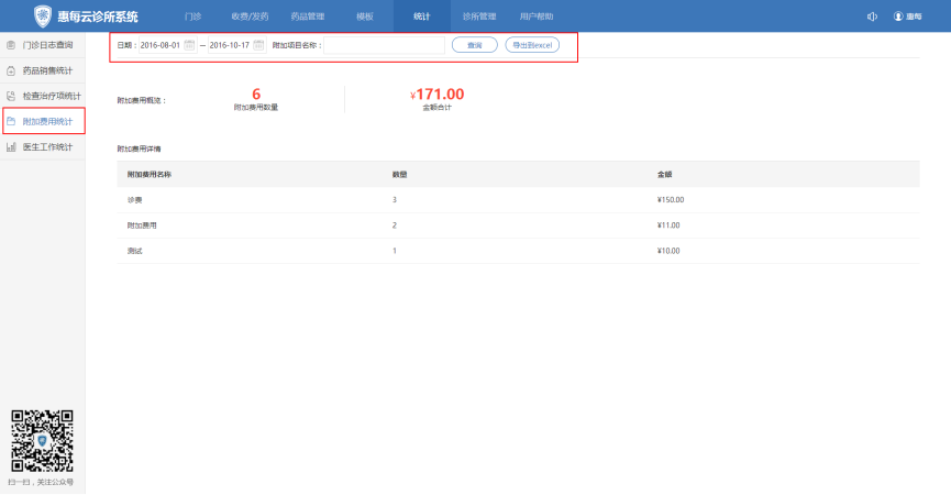 - 1. 进入统计→附加费用统计
