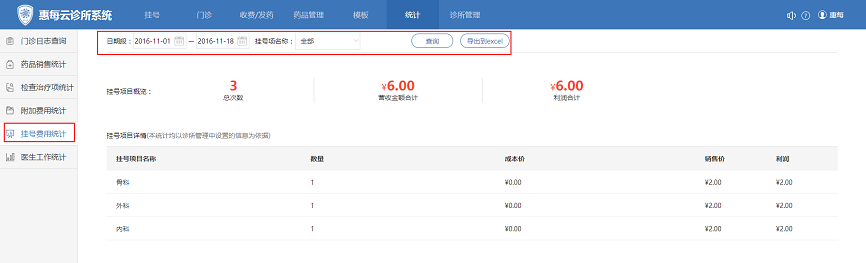 五、挂号费用如何统计